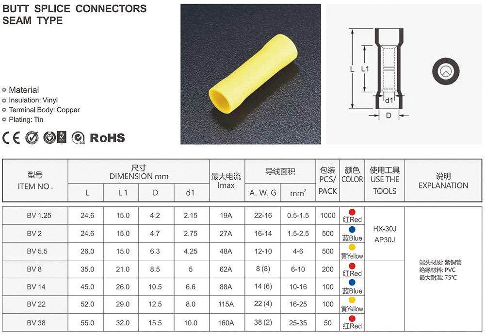 圓形預(yù)絕緣端頭(RV型)