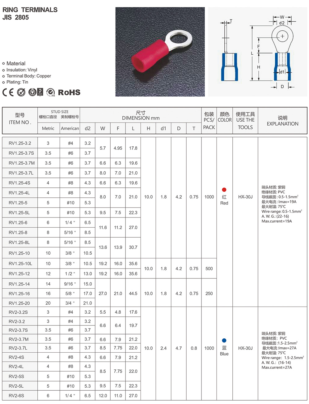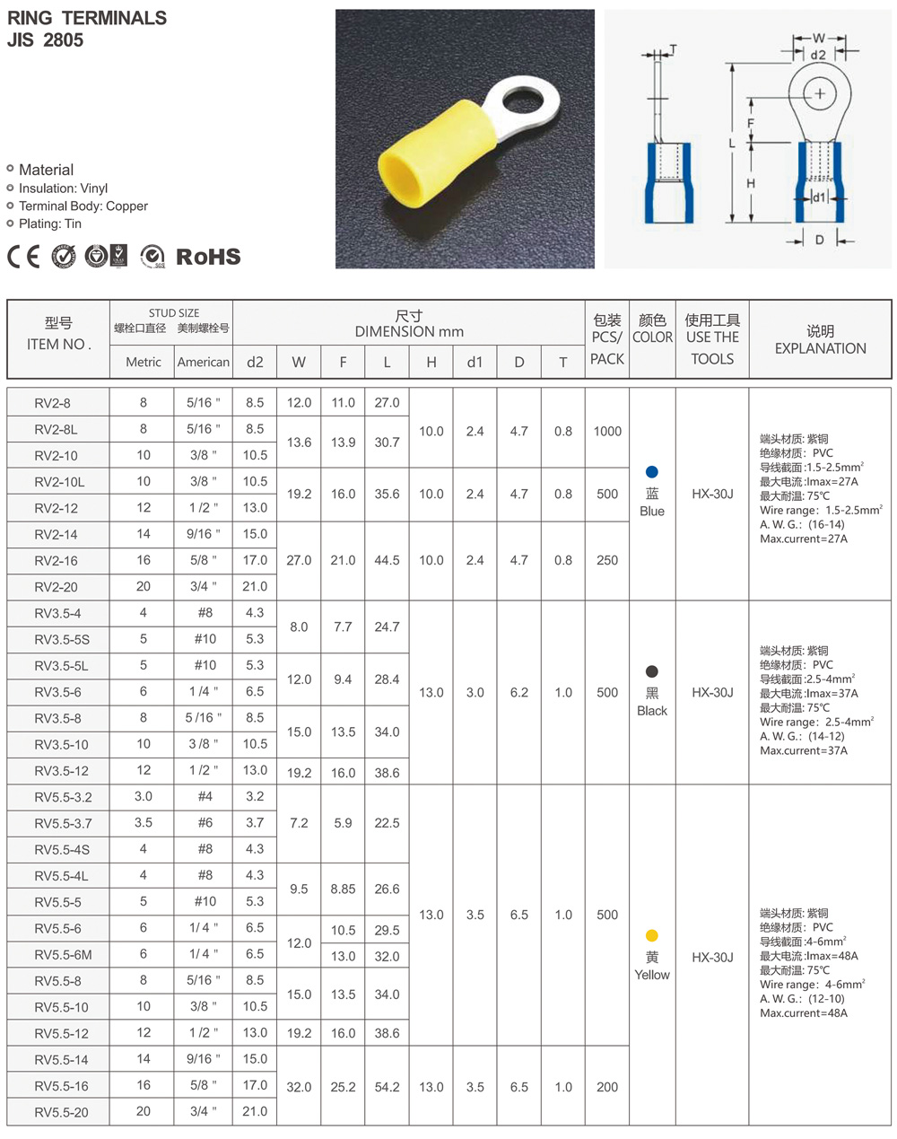 圓形預(yù)絕緣端頭(RV型)