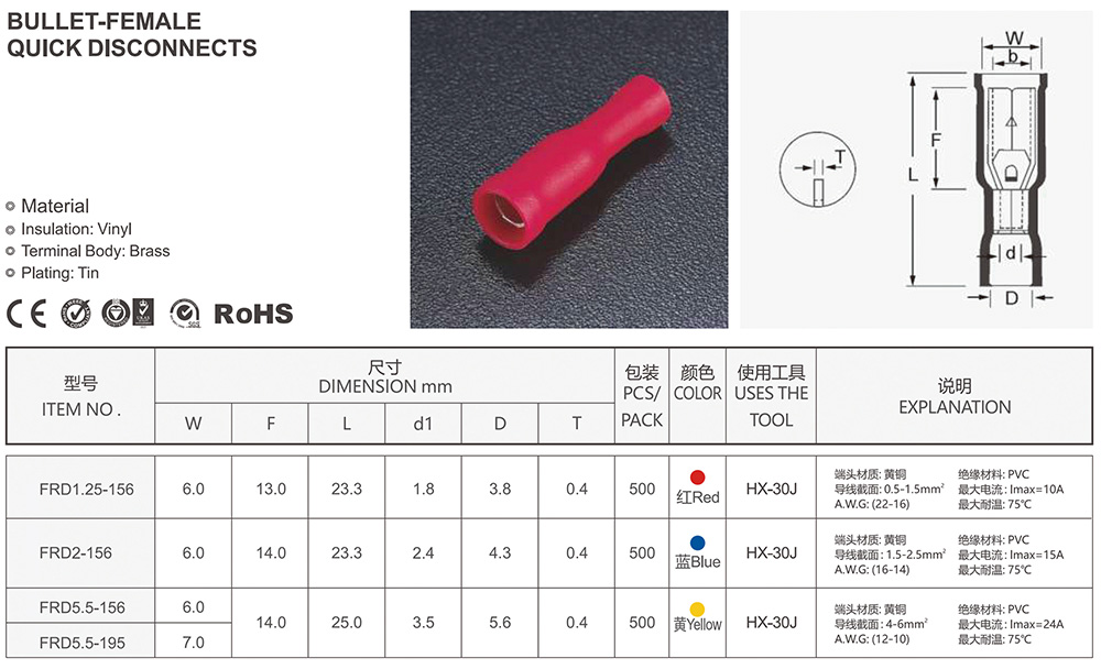 圓形預(yù)絕緣端頭(RV型)