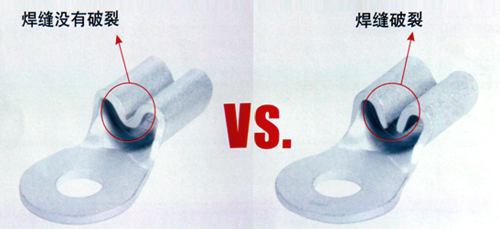 七、公司擁有精湛的焊接技術(shù),精選優(yōu)質(zhì)焊接材料,在裸端子尾部接縫處實(shí)施銀焊,生產(chǎn)出高品質(zhì)的焊接端子,確保壓著后不會(huì)產(chǎn)生破裂,及時(shí)在惡劣的使用環(huán)境下,仍能擁有強(qiáng)勁牢靠的拉拔力,且經(jīng)過(guò)低溫?zé)崽幚恚栽鰪?qiáng)抗拉強(qiáng)度并確保物理性能指標(biāo)。 |